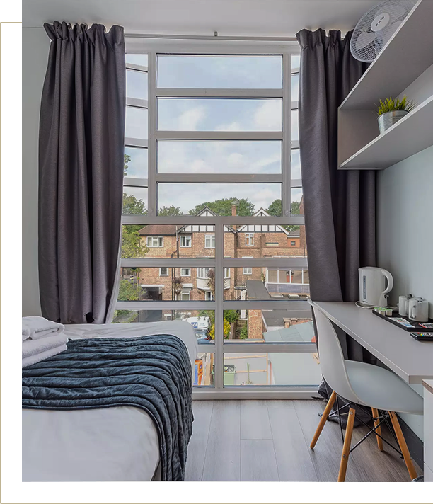 The Napier building provides rooms and studios in various locations across London, catering for various lengths of stay. Our Acton property is designed to be a cosy home-from-home – feel free to stay as long as you need – because we know flexibility matters.